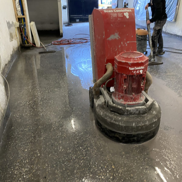 Het beton wordt gepolijst met een gebonden diamanten schuursegment. Hiermee wordt de structuur van het beton verdicht. Kleine krasjes zijn nu volledig verdwenen, het granulaat in het beton begint nu licht te glanzen of glimmen. Het cement behoudt haar grijze doffe uitstraling.
