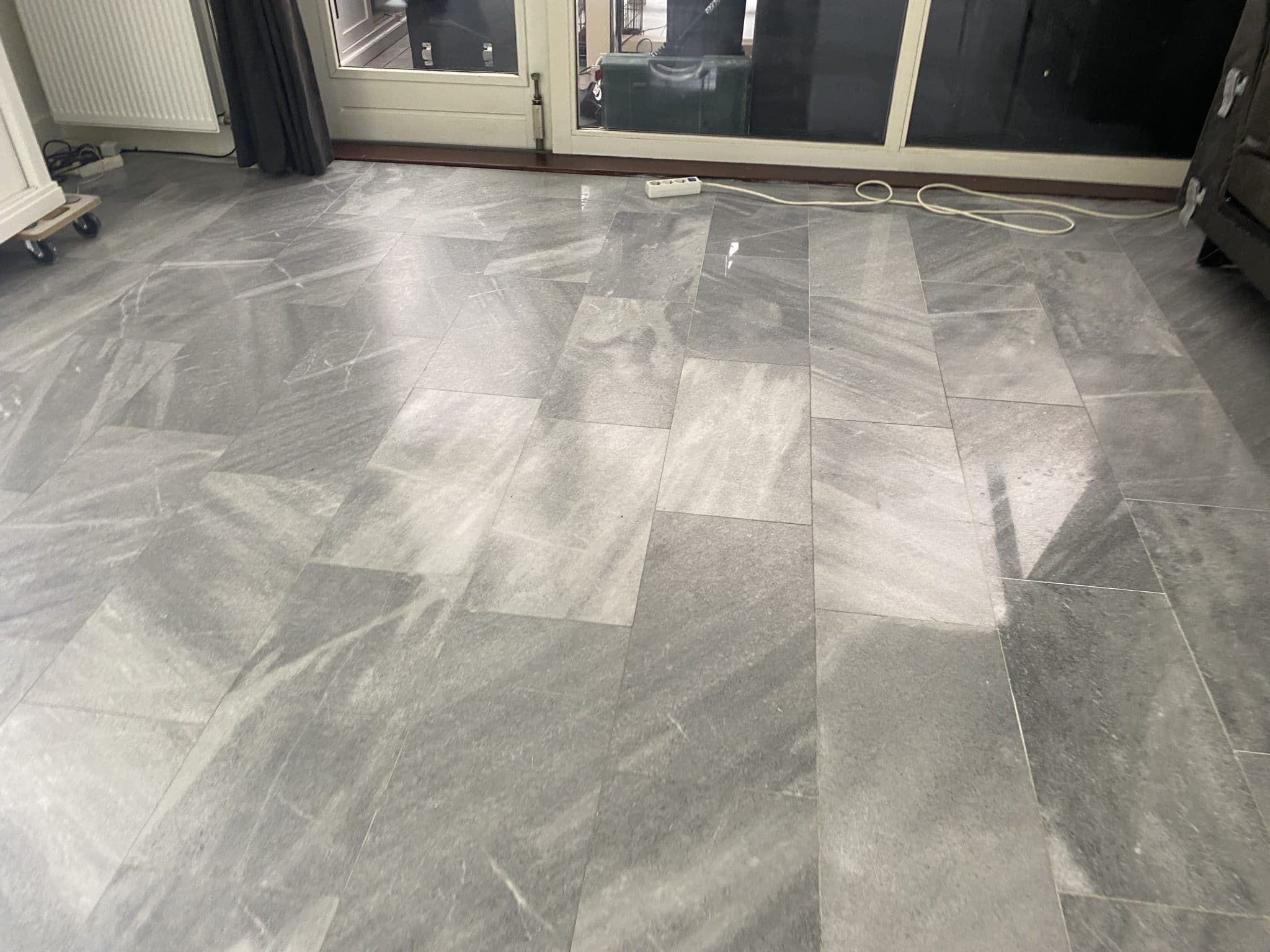 Nieuw gelegde natuursteen vloeren worden vaak als eindafwerking nog een keer gekristalliseerd. Vaak blijft er na het voegen van het natuursteen nog een lichte cementsluier achter. Hierdoor ziet het natuursteen er dof uit met een matte waas. Door het kristalliseren verdwijnt de doffe waas en komt de mooie glans terug op het natuursteen.